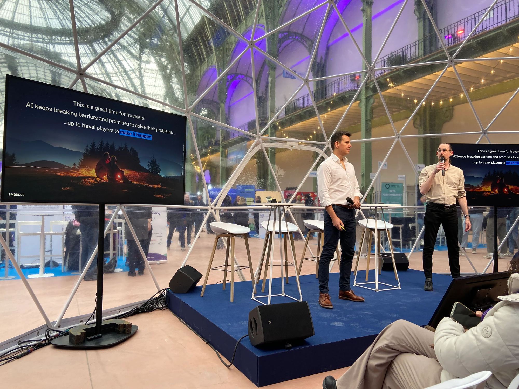 Olivier Kuffler (AI Program Director) et Yannick Devaux (Innovation Director) chez Amadeus ont posé immédiatement les vrais enjeux : la transformation de l'expérience voyageur ne se fait pas dans les slides marketing, mais dans la capacité à résoudre des problèmes concrets à très grande échelle.