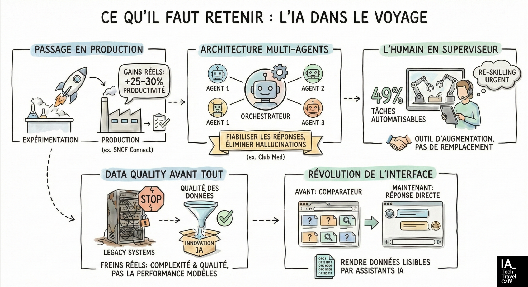 Les acteurs majeurs ne sont plus dans l'expérimentation. Les gains sont réels (+25-30% chez SNCF Connect), mesurés et assumés. - L'architecture multi-agents, la solution ?
