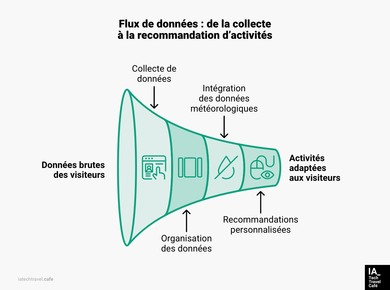 Un office de tourisme qui souhaite utiliser l'IA pour recommander des activités personnalisées à ses visiteurs doit d'abord collecter et organiser des données détaillées sur les événements, les horaires, les préférences des visiteurs, et même les conditions météo pour proposer des recommandations adaptées.