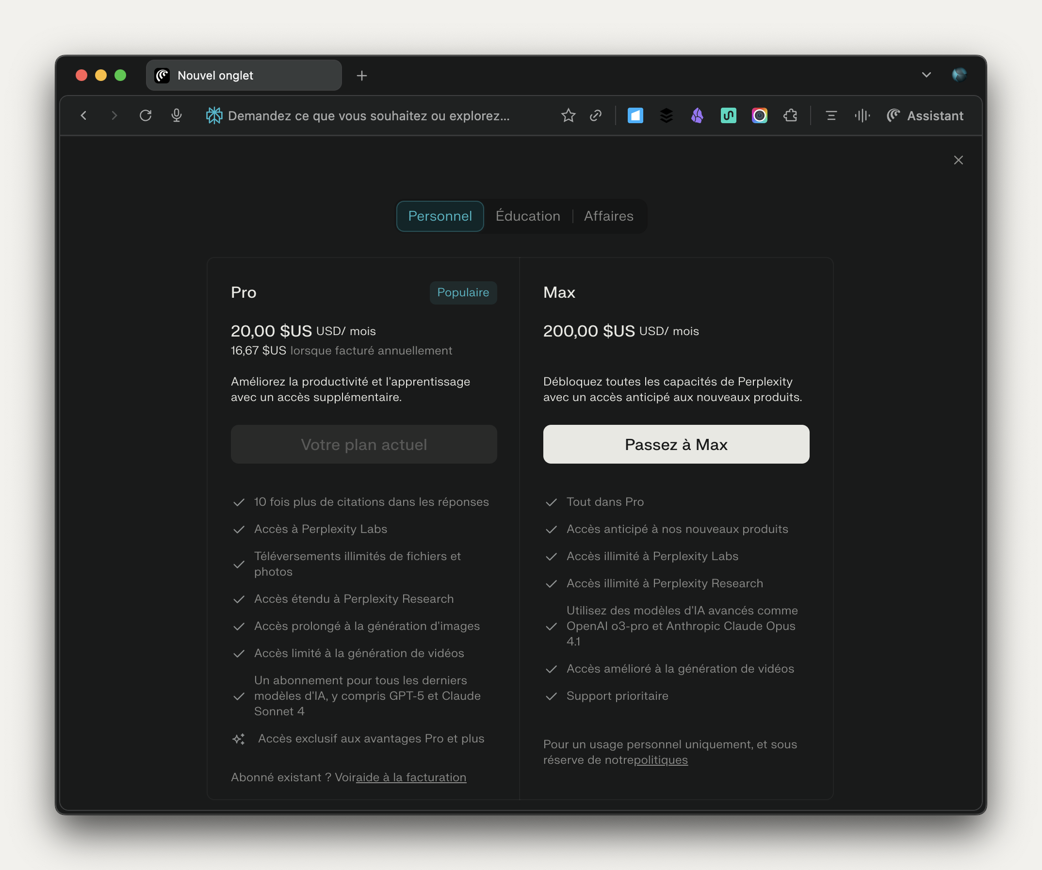 Les abonnements de Perplexity varient par la puissance des modèles d’IA et l’accès à certaines fonctions avancées.