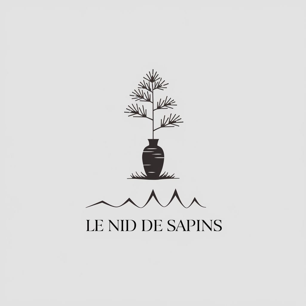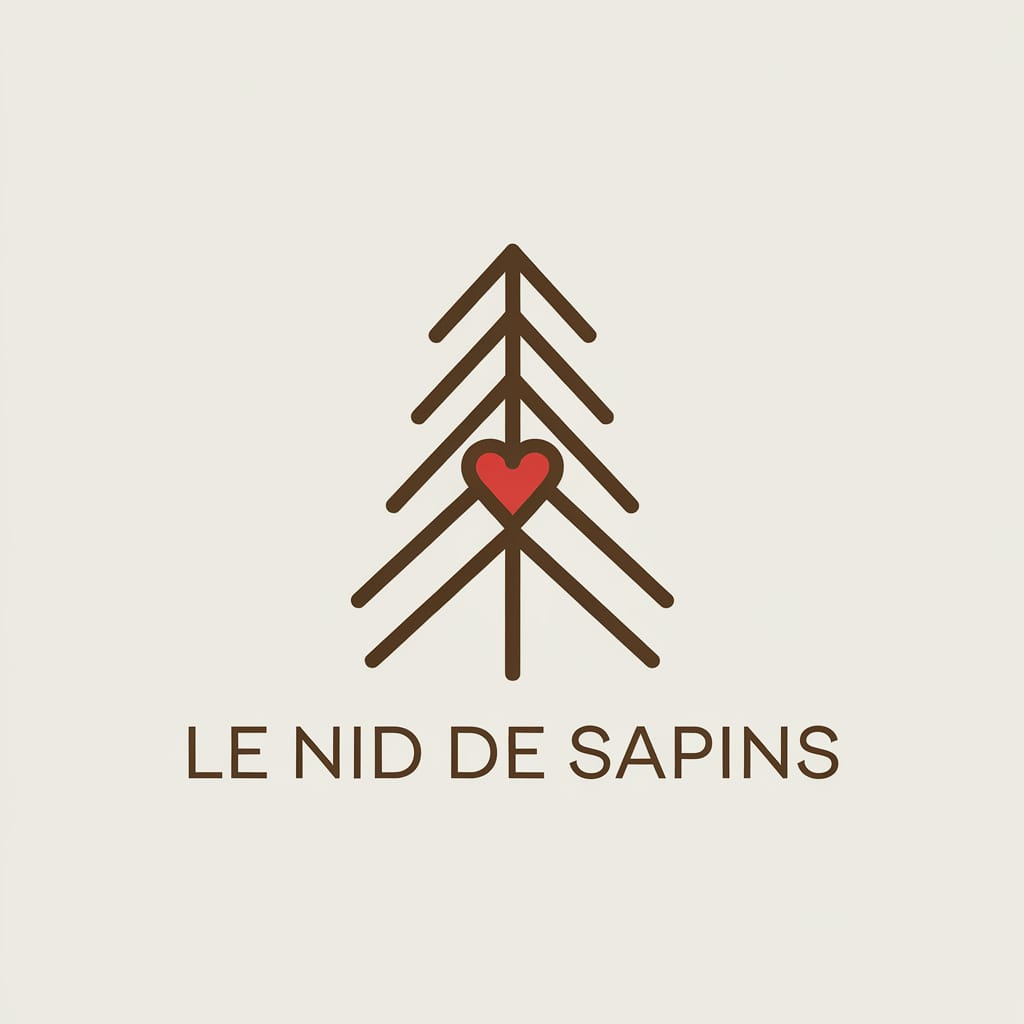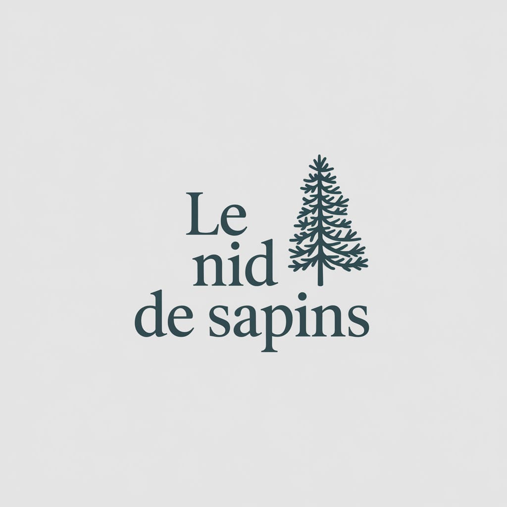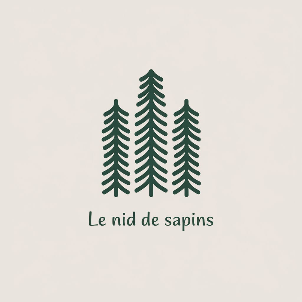 Logo pour une maison d’hôtes dans les Vosges, style chaleureux et minimaliste, texte “Le Nid de Sapins”