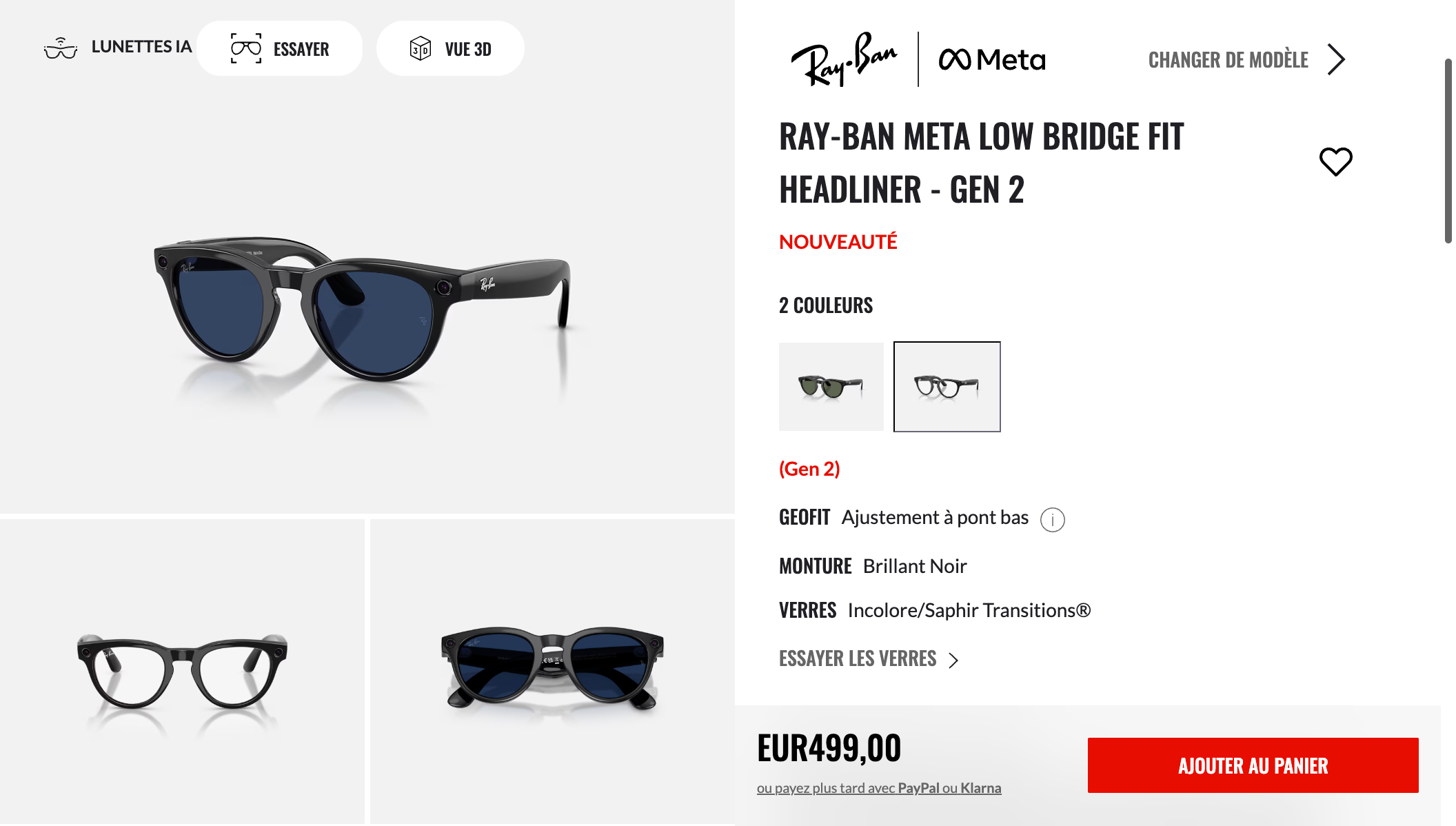 À partir de 329 € pour le modèle de base et jusqu'à 499 € pour les versions plus haut de gamme (verres Transitions ou polarisants), on est sur le prix d'une belle paire de lunettes classique.