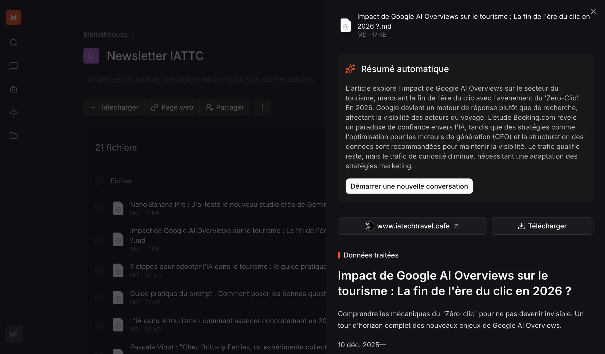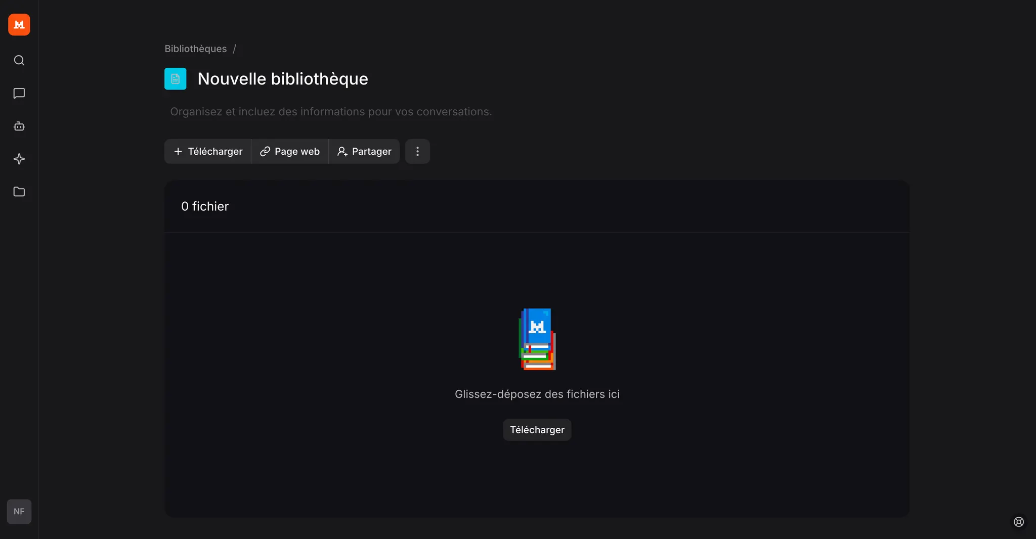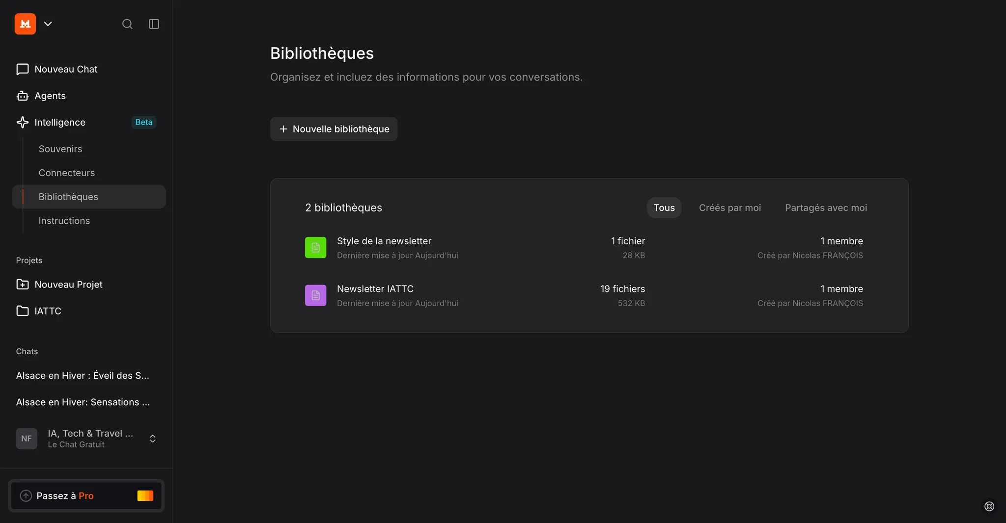 C'est un vrai point fort de Mistral. Au-delà du simple ajout de fichiers à un prompt, vous pouvez créer des bibliothèques pour organiser vos bases de connaissances.