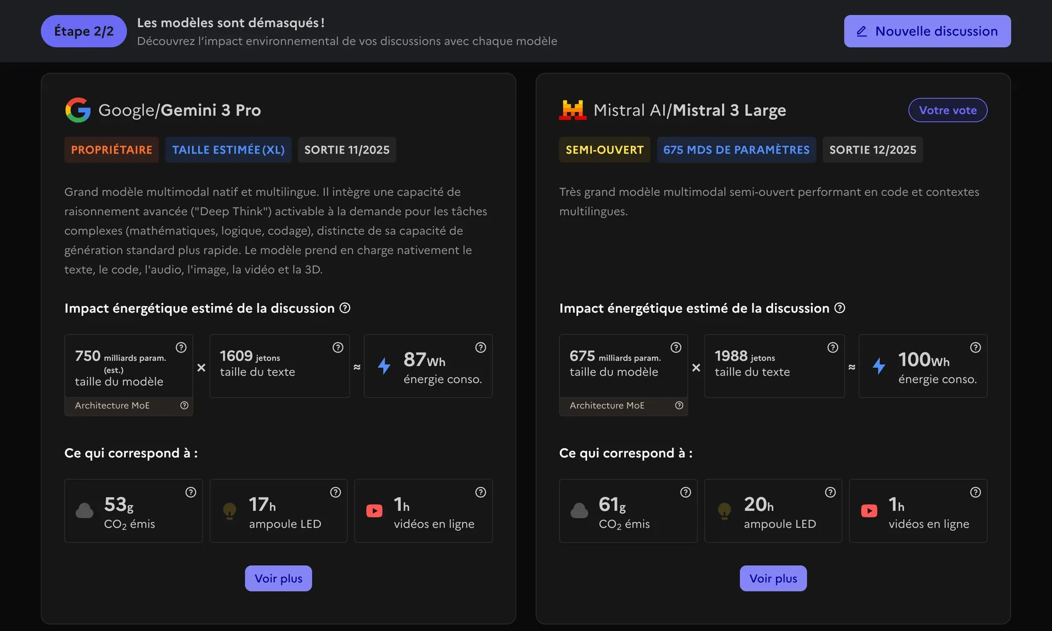 De plus, leur infrastructure principale (Mistral Compute) est hébergée en France, avec un focus sur l'utilisation d'énergies décarbonées. Ce n'est pas anodin quand on sait que le mix énergétique français (nucléaire + renouvelables) émet environ 6 fois moins de CO₂ que le mix énergétique mondial moyen.