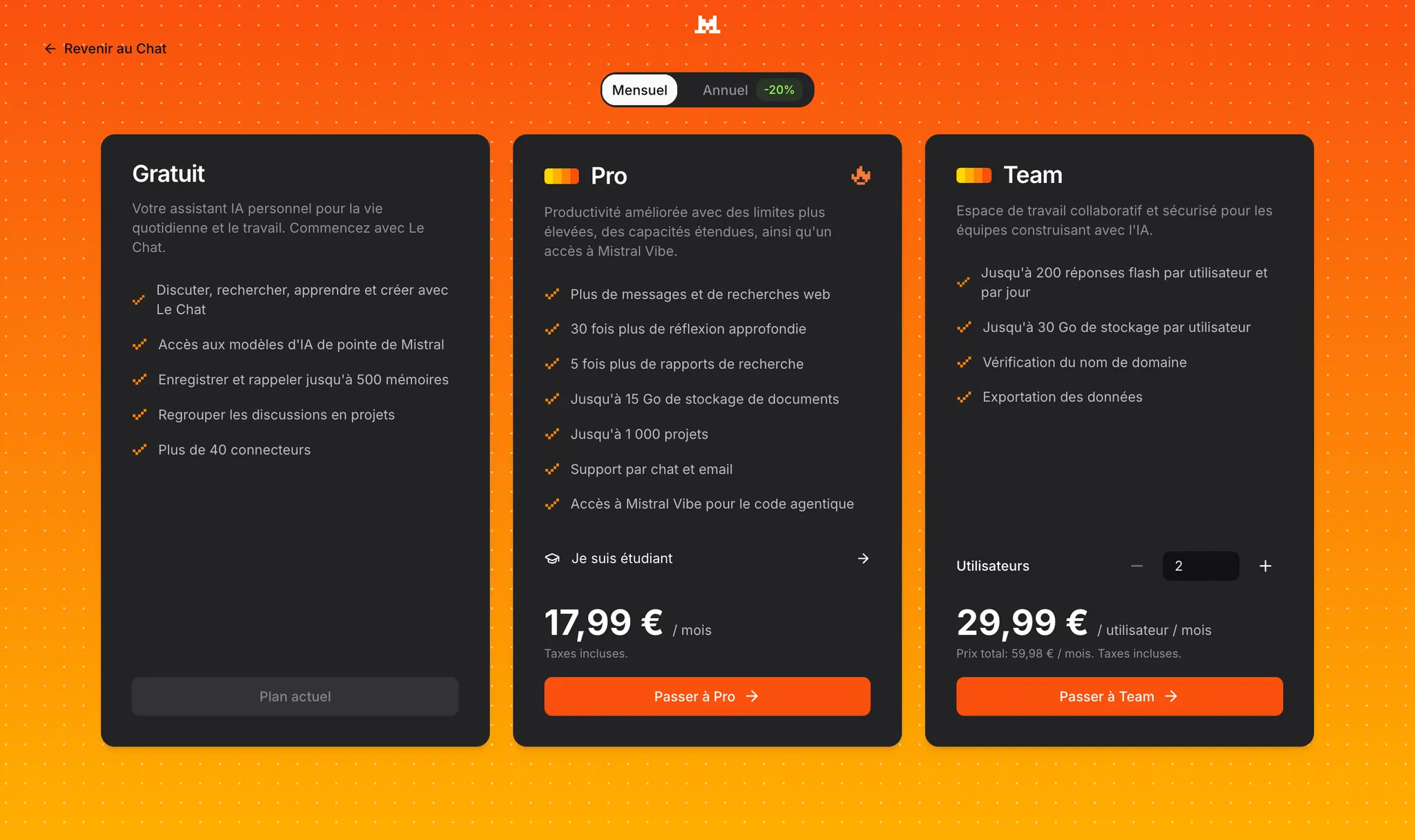 Commencez par Le Chat en version gratuite : chat.mistral.ai