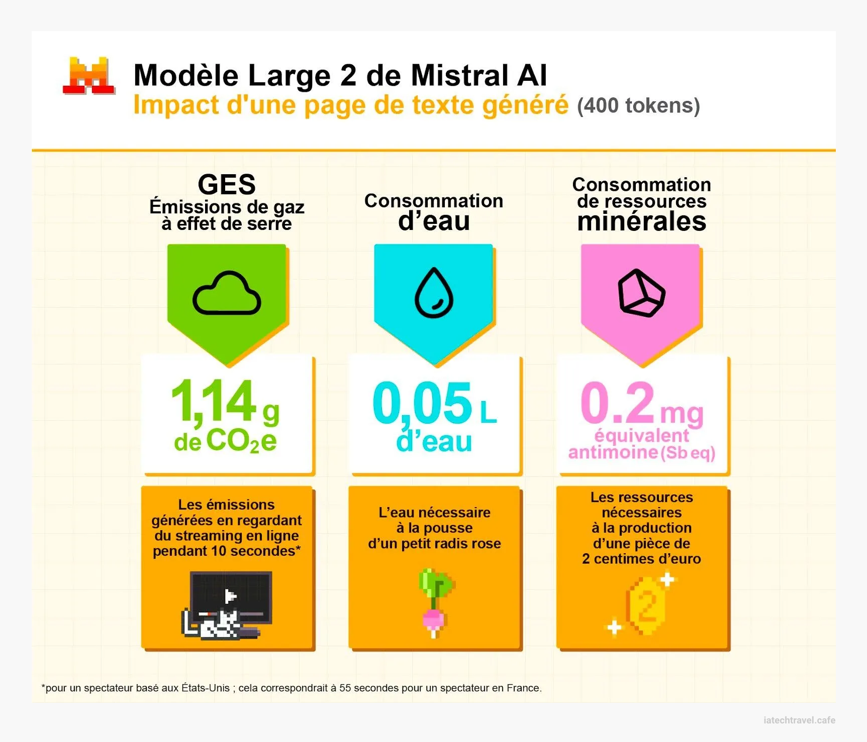 À l'été 2025, Mistral a publié une étude documentant pour la première fois les impacts environnementaux d'une requête "type" (représentative de l'usage moyen) sur son IA grand public. Une démarche de transparence ? Oui. Suffisante ? Pas vraiment.