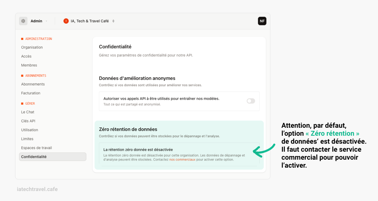 2. Quel contrat sur les données (logs, rétention, entraînement…)