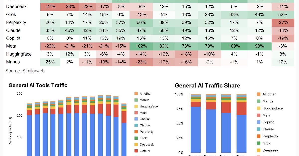 En Europe, les solutions locales comme Mistral bénéficient d'un gros regain d’intérêt, portées par les préoccupations RGPD et la stratégie de souveraineté numérique (le tout boosté par le contexte géopolitique). Même si les chiffres précis de parts de marché européennes restent difficiles à consolider (façon polie de dire que je n’ai pas trouvé de chiffres fiables), la dynamique est là…. ou à minima l’intérêt grandit !