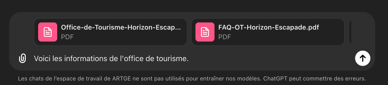 Si vous disposez d’un guide touristique de votre office de tourisme ou d’une brochure de votre entreprise au format PDF, ça peut constituer un très bon point de départ pour tester l’interrogation directe de ces documents dans ChatGPT.