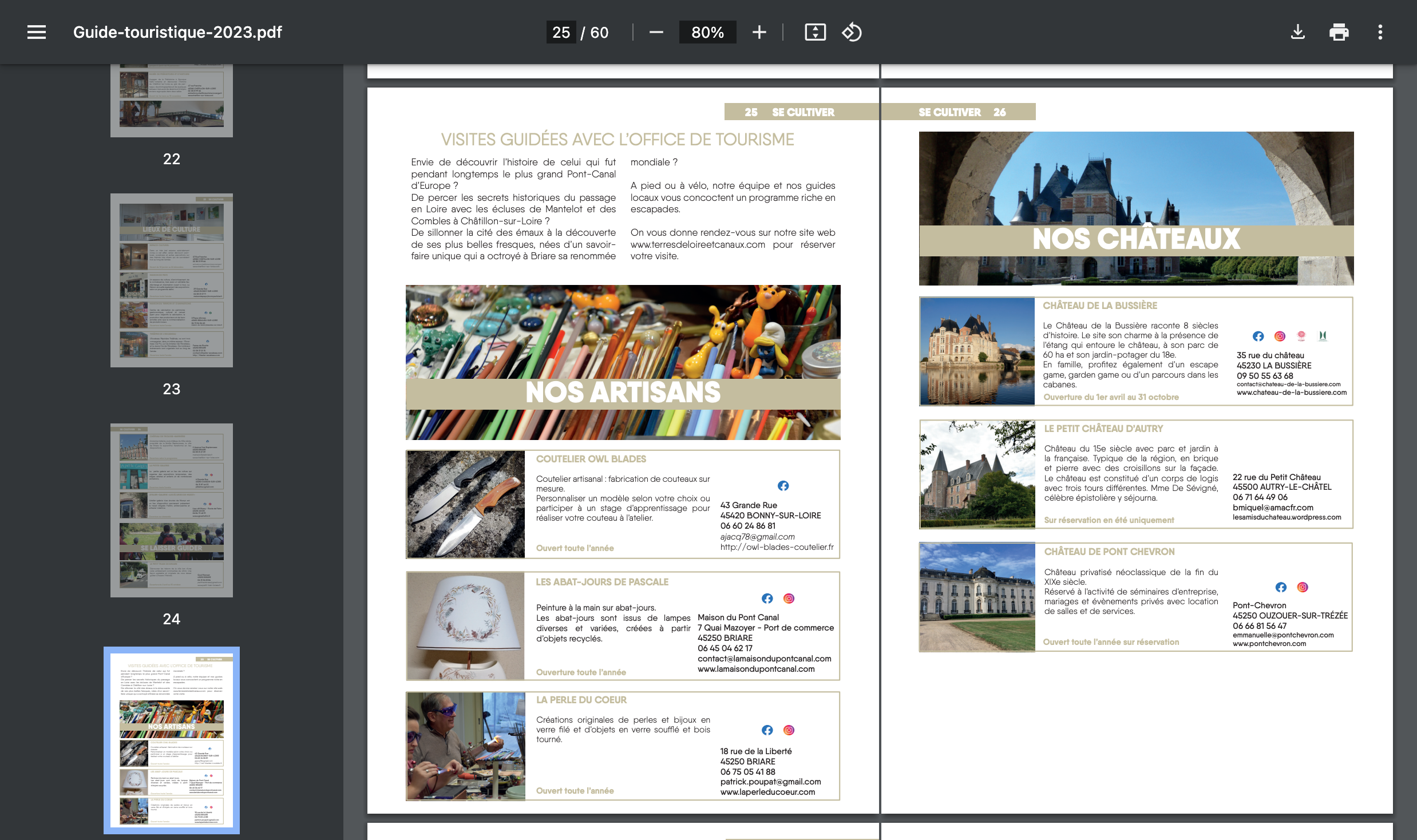 Exemple avec ce guide touristique de l’Office de Tourisme Terres de Loire et Canaux :