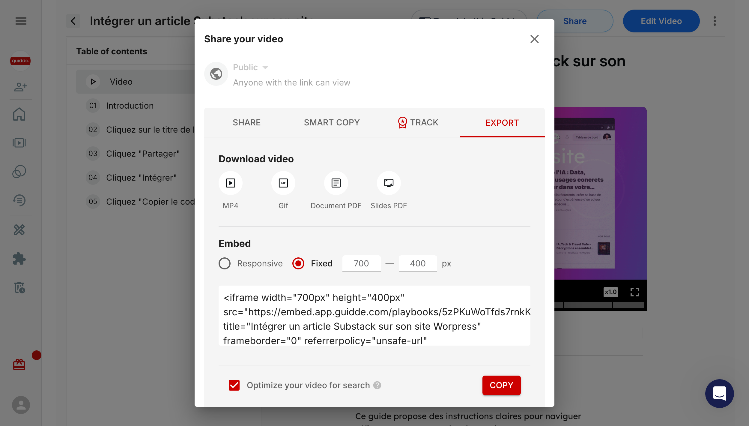 Guidde ne se limite pas aux vidéos. Vous pouvez également exporter vos guides :