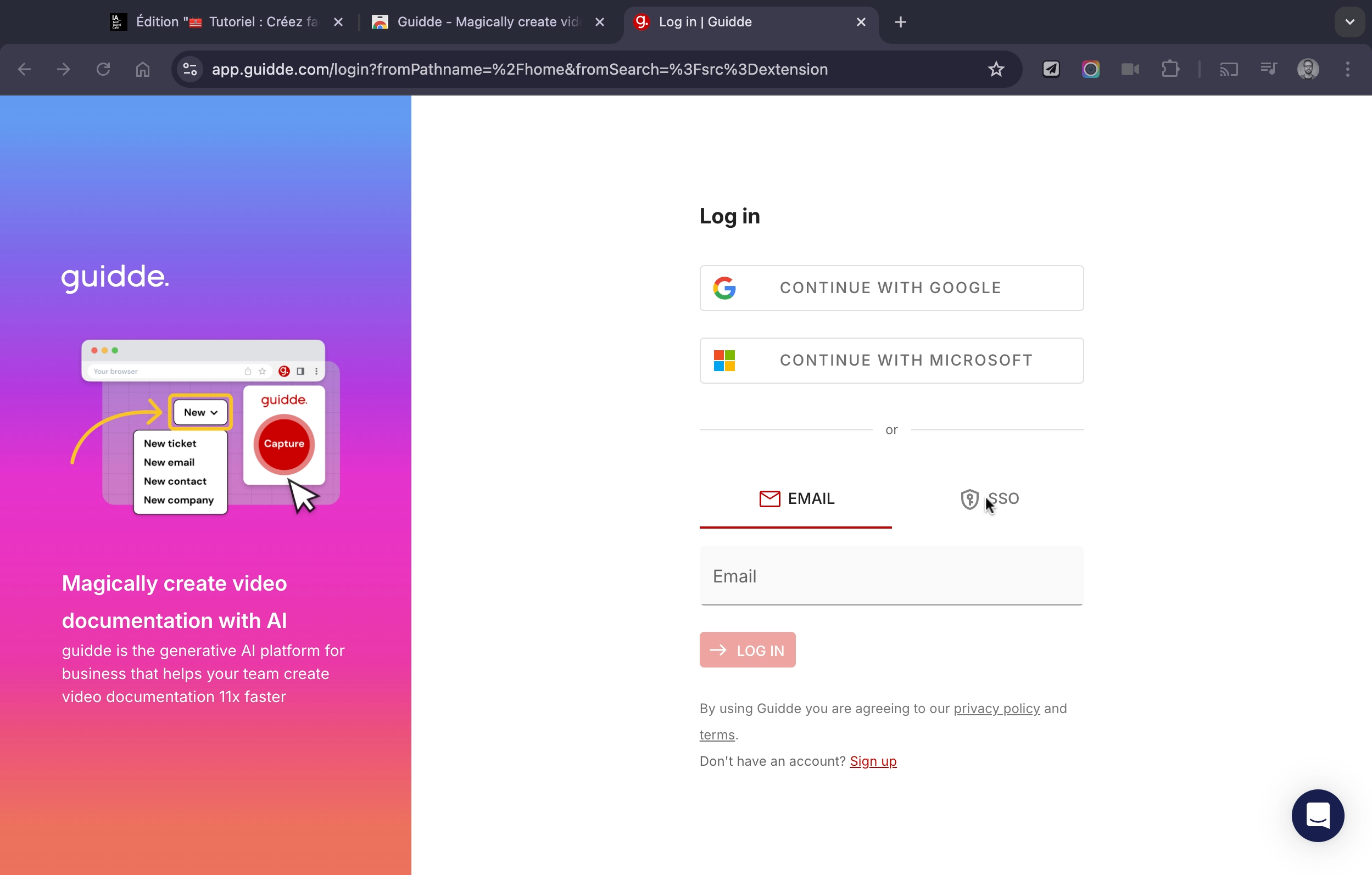 1️⃣ Inscrivez-vous gratuitement sur Guidde : www.guidde.com